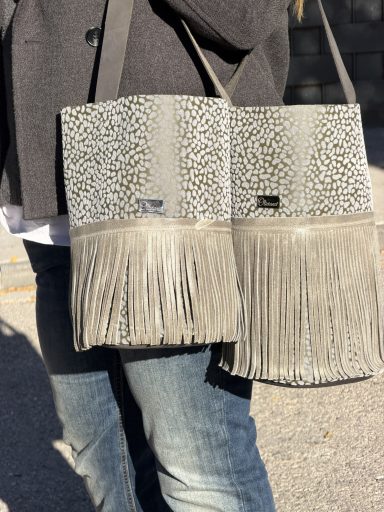Los originales, base de piel de vacuno con una sola banda de pitón, con banda y fleco, con un solo fleco largo de piel, con dos flecos, o nuestros favoritos "Los tres gustos", tres flecos de piel