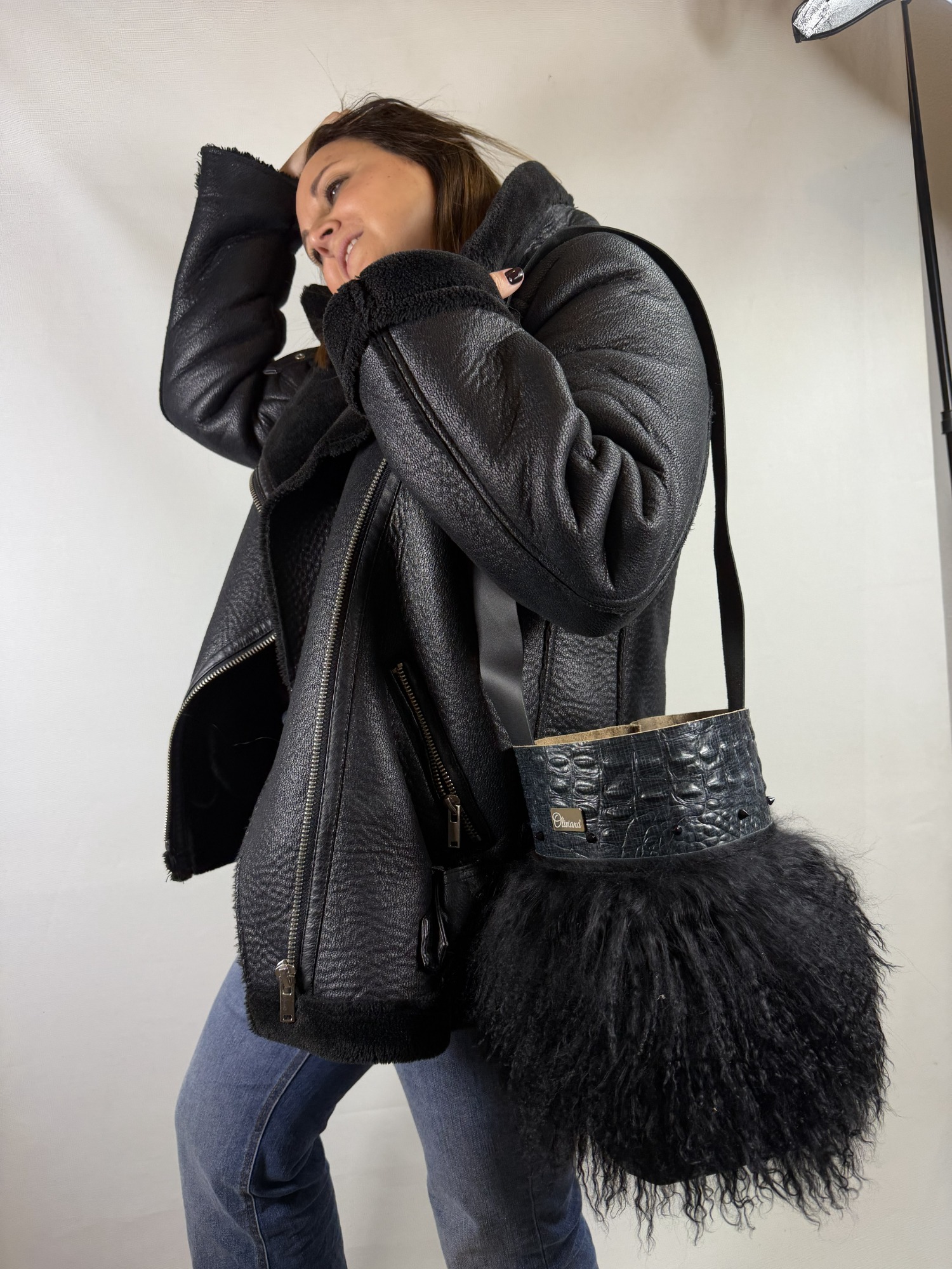 Bolsos de piel con pelo natural de oveja